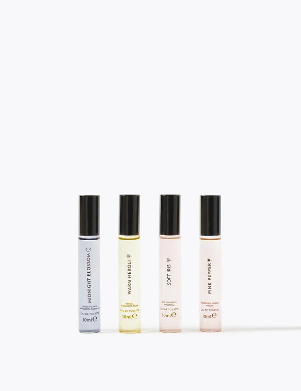 Indulge your senses with this luxurious eau de toilette gift set. The set of four from our Discover range comprises pink pepper, midnight blossom, soft iris and warm neroli fragrances. Each bottle contains 10ml of fragrance. This product is vegan.
